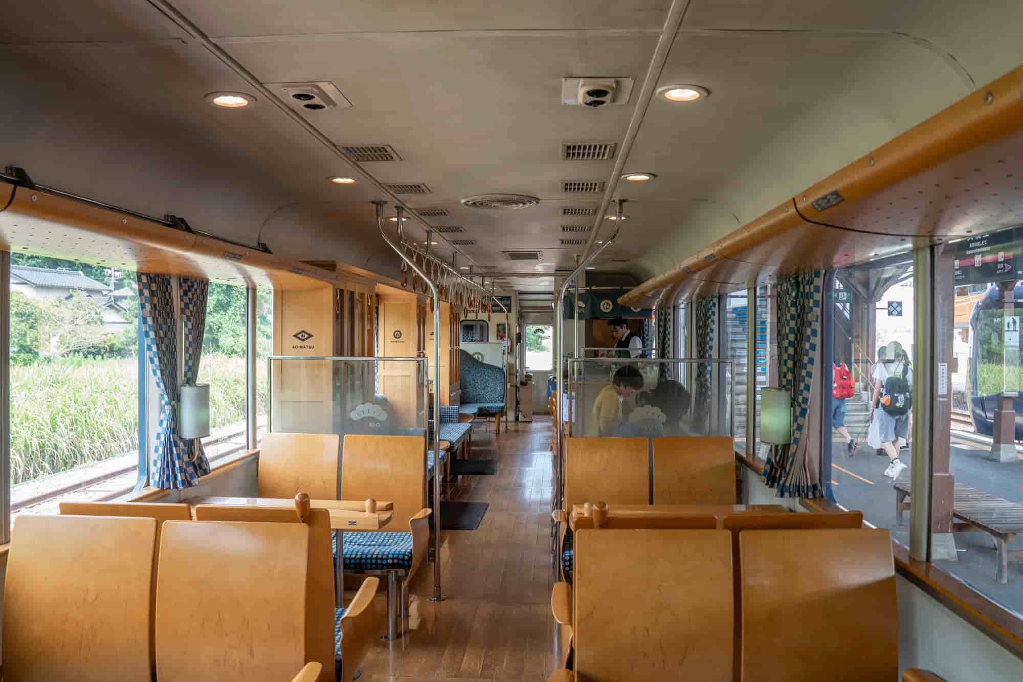 車内は4人がけの席を中心に、カウンター席とソファ席も完備。
