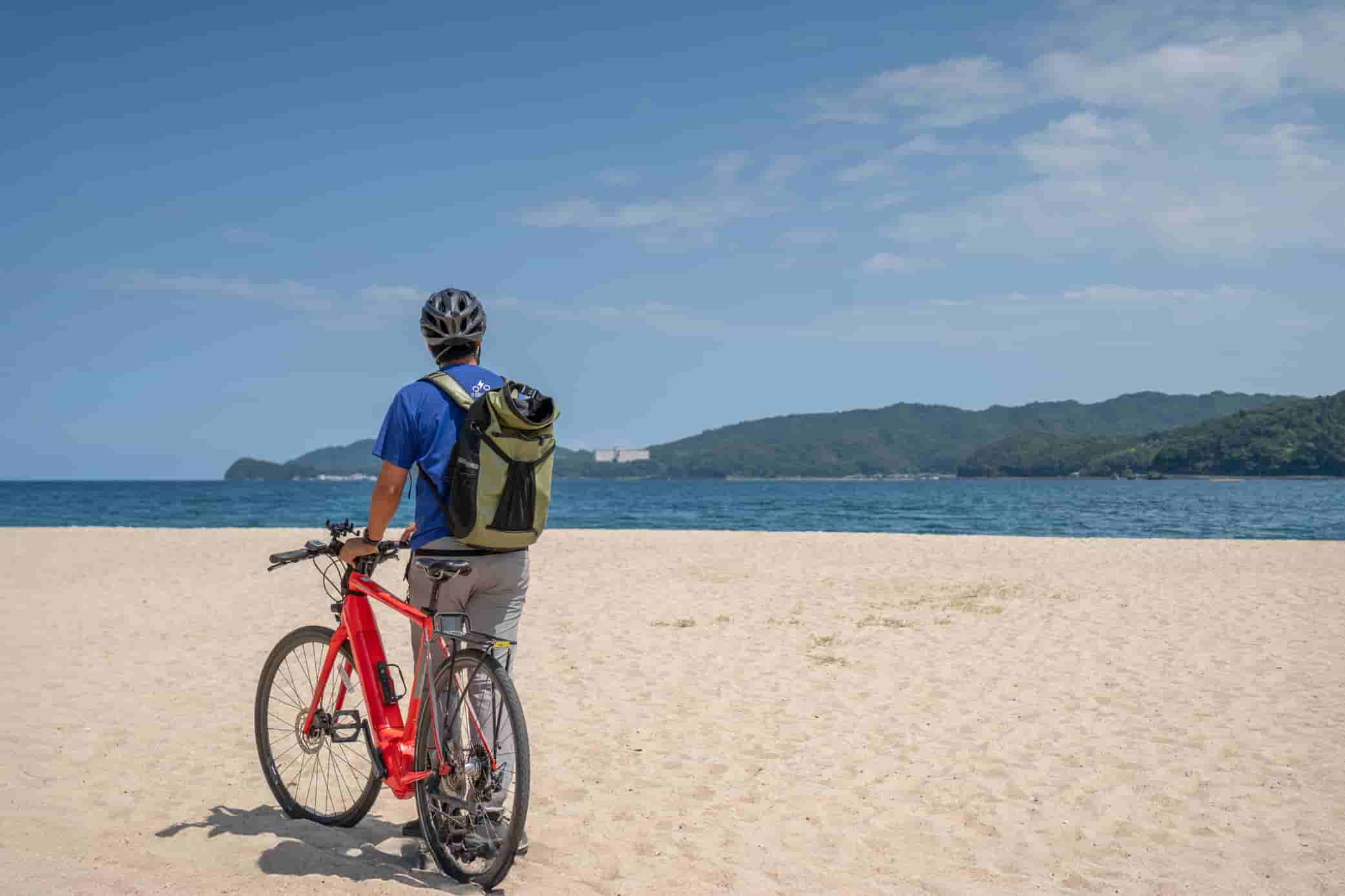 気軽にサイクリングを楽しむなら、全長約14kmの「天橋立1周コース」がおすすめ。海沿いに続く自転車専用道は勾配がなく、初心者や子連れファミリーでも安心してサイクリングを楽しめる。