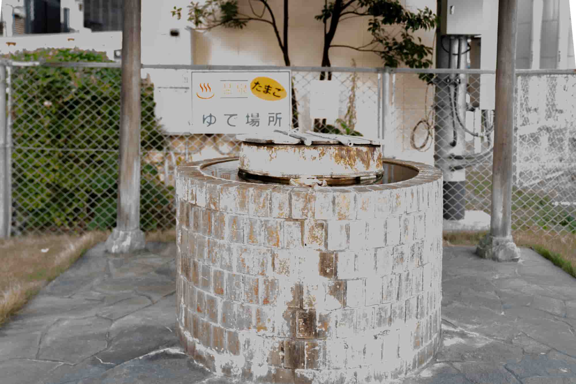 日帰り温泉施設「ユートピア浜坂」の敷地内には、この源泉を利用した「温泉たまごゆで場所」があり、近隣のスーパーでは玉子売り場に温泉玉子用ネットが置かれているのも温泉の町ならではの光景だ。