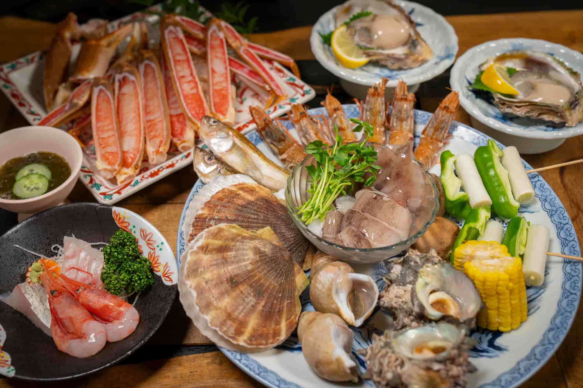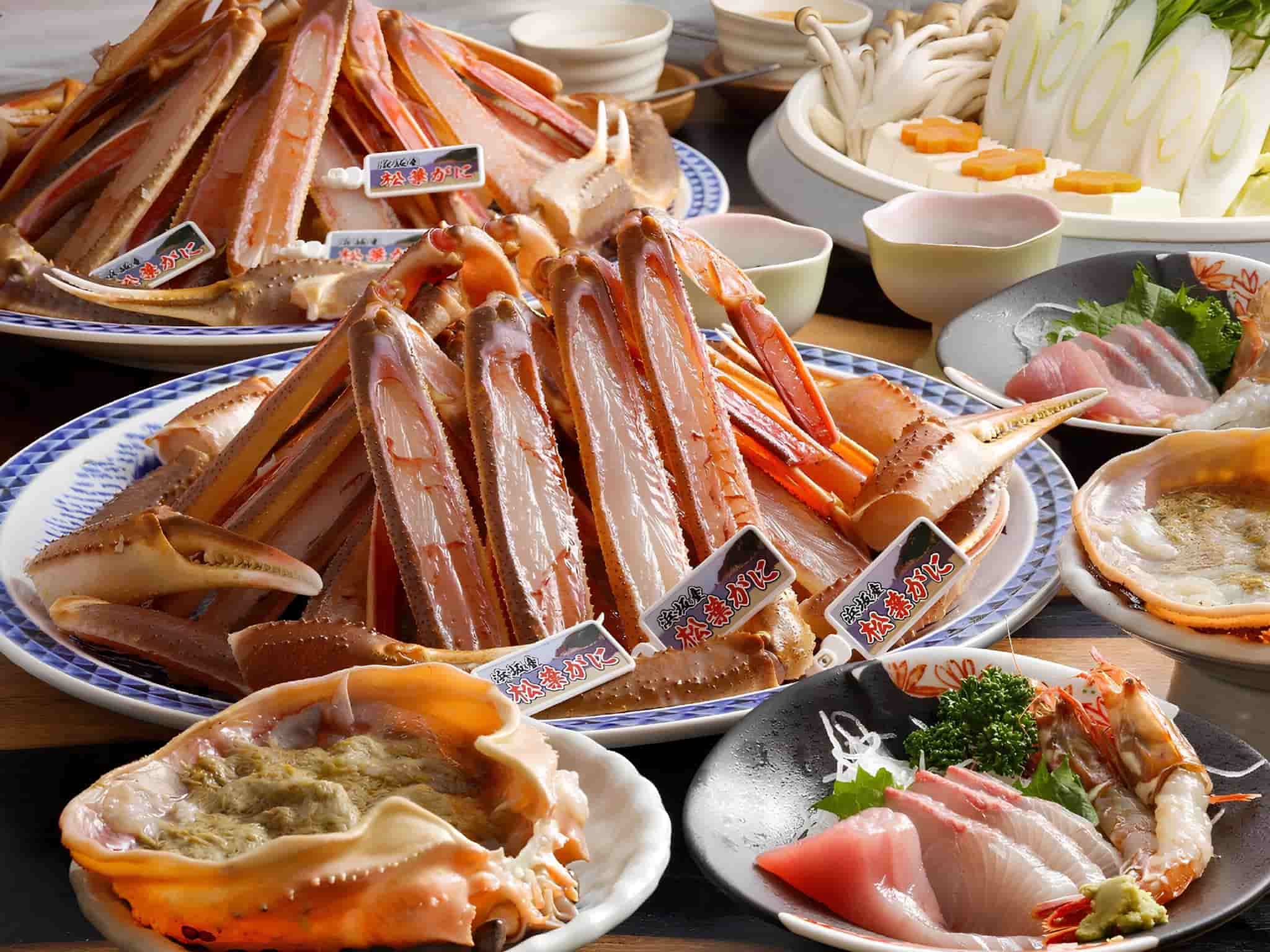 ズワイガニ&海賊焼きプラン1泊2食付き21800円~(2名1室)。