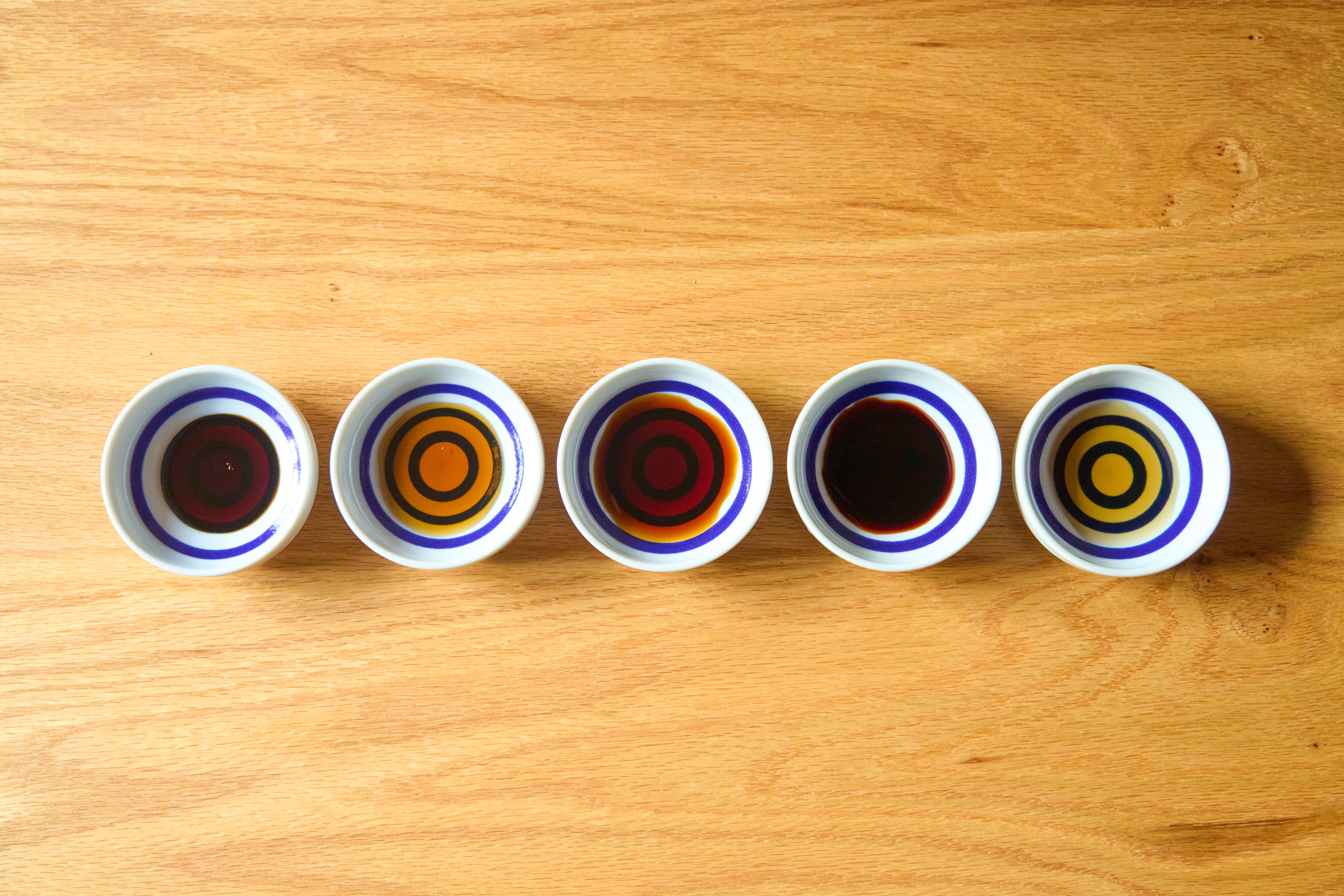 日本の食文化を支えてきた醤油は、大きく分けて5種類に分類される。その品質は、原料や発酵方法、塩分濃度などを基準とするJAS規格(日本農林規格/Japan Agricultural Standards)によって厳しく管理され、審査会では蛇の目模様の利き味皿を用いて、色・香り・味わいが丁寧に確かめられている。