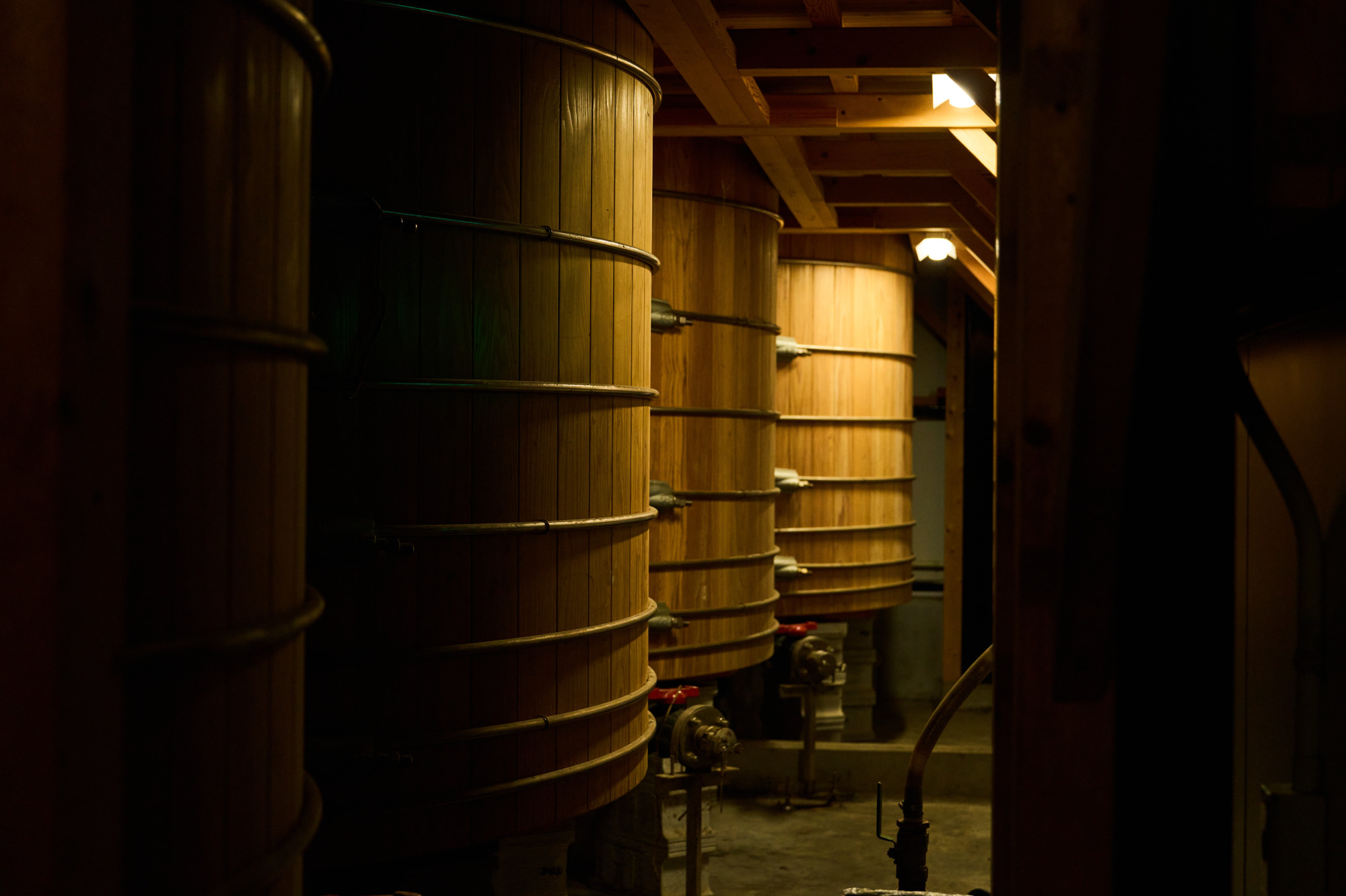 2018年、1本約5,000L仕込むことができる木桶を4本新調した。国産有機原材料に特化し、一年以上自然のままに発酵・熟成していく。