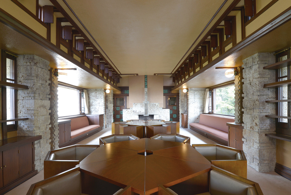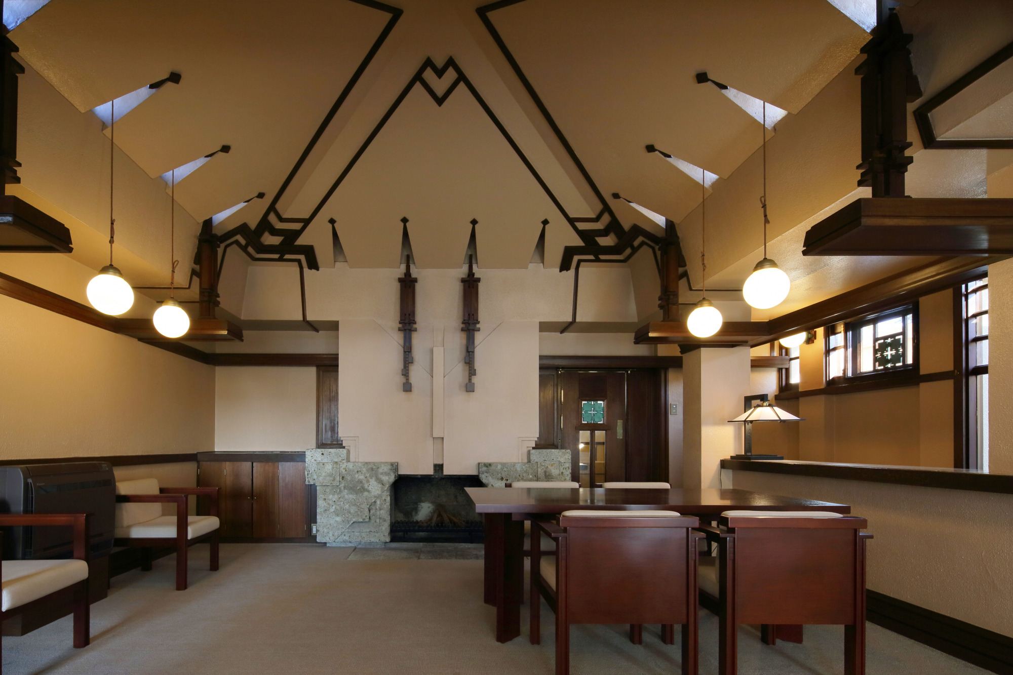 高級住宅地・芦屋を一望する高台に立つ、近代建築の巨匠フランク・ロイド・ライト設計の国指定重要文化財。和洋折衷のスタイルが特徴的な「阪神間モダニズム」を象徴する建築のひとつです。1924年完成時の姿がほぼ完全に残されており、天井や窓の格子など随所にライトの建築思想を感じることができる貴重な建築物です。