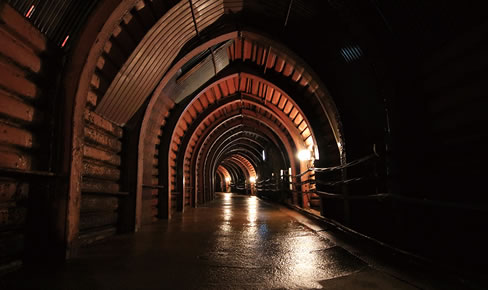 生野鉱山の坑道 飾磨港と生野・神子畑・明延・中瀬の鉱山群を結ぶ“銀の馬車道鉱石の道”は、明治時代に出現した生産から輸送・物流に及ぶ「海と山を結ぶ鉱業コンビナート」でした。この道には、多く・速く・遠く運ぶための思想と先端技術が詰め込まれ、近代化に舵を切った鉱山経営の仕組みがほぼ完全に残されており、その姿は現在の暮らしを支える「ものづくり」の始まりの様子を示しています。