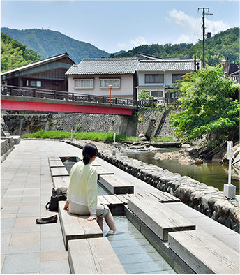 テレビドラマ「夢千代日記」の舞台にもなった情緒あふれる温泉街。荒湯周辺では、卵をゆでたり、足湯に浸かったりする観光客でにぎわいます。「夢千代日記」の関連資料を展示する「夢千代館」も人気。
