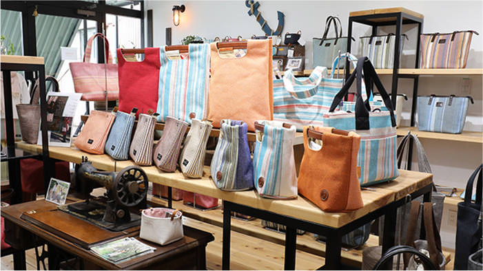 松右衛門が航行のスピードアップを目的に発明した日本最古の帆布を現代によみがえらせ、おしゃれなトートバッグや小物などを販売。観光客の人気が高く、お土産にもぴったりです。