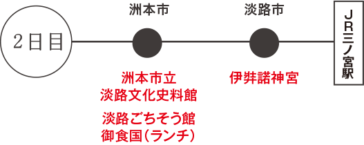 - 洲本高速バスセンター(15:00) →(高速バス)→ 高速舞子(15:56)