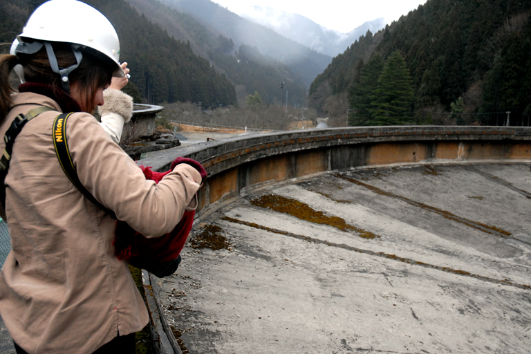 神子畑選鉱場跡は、静かな山の中に突然、現れます。