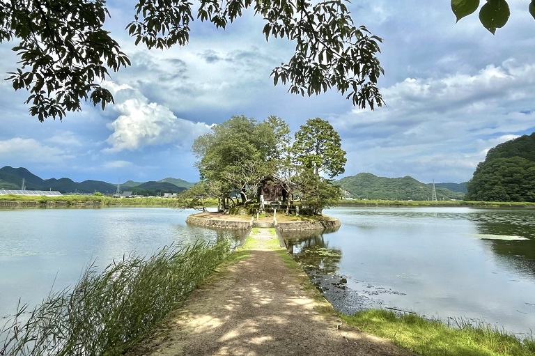 「池の上に建つ神社」という幻想的なロケーションから、フォトジェニックなスポットとしてSNSで話題を呼んでいる須濱神社。