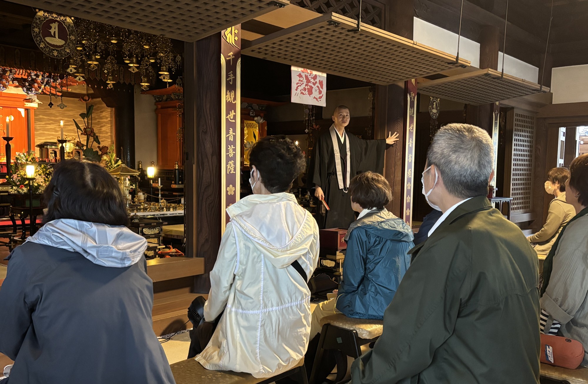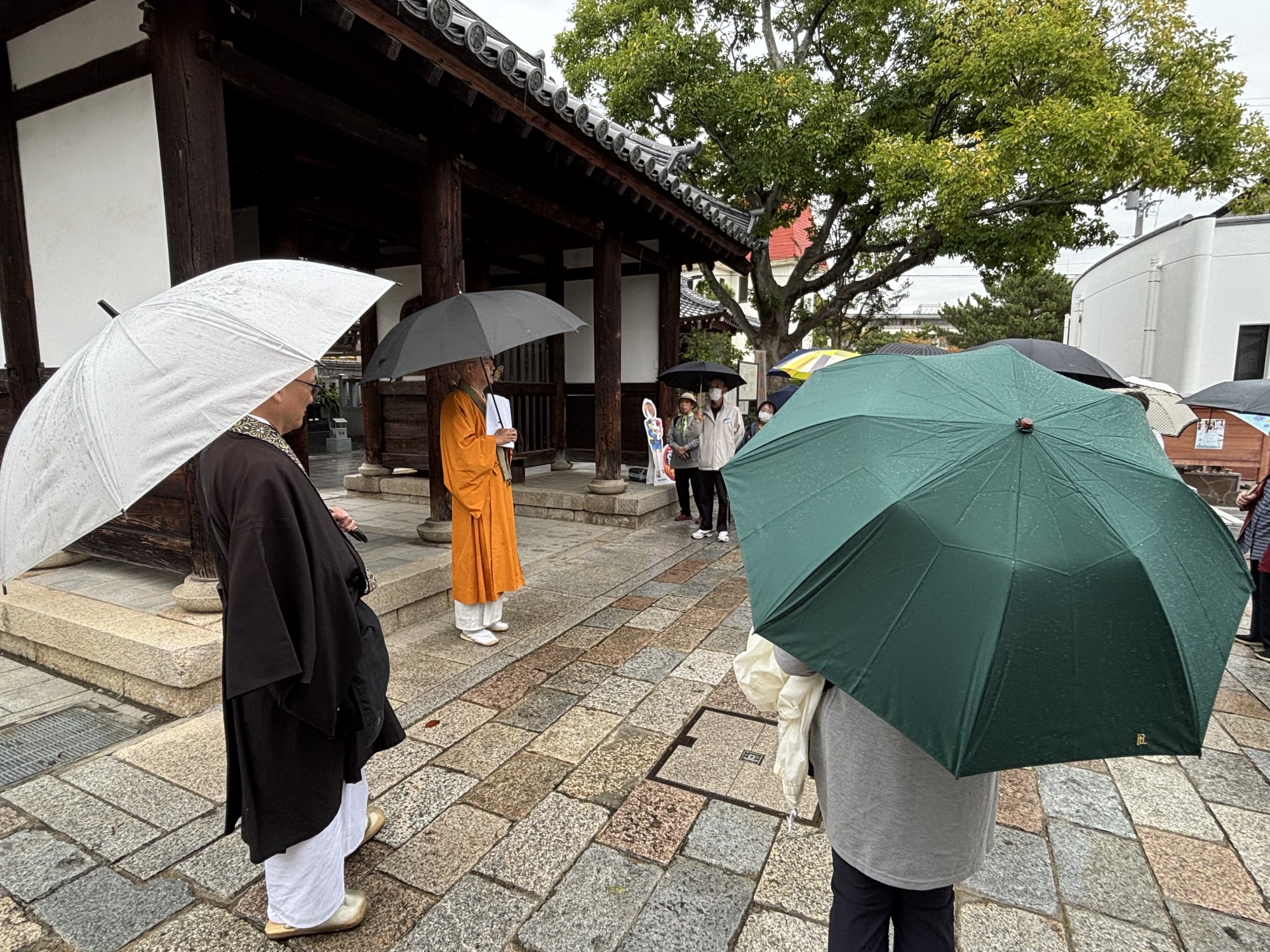 このバスツアーの特徴のひとつは、僧侶の方がガイド役を務められること。今回は神戸市兵庫区にある能福寺の雲井雄善住職がガイド役となり、法話で磨かれた巧みな話術で、時に笑いを織り交ぜながら、仏教のあれこれをわかりやすく解説してくださいます。