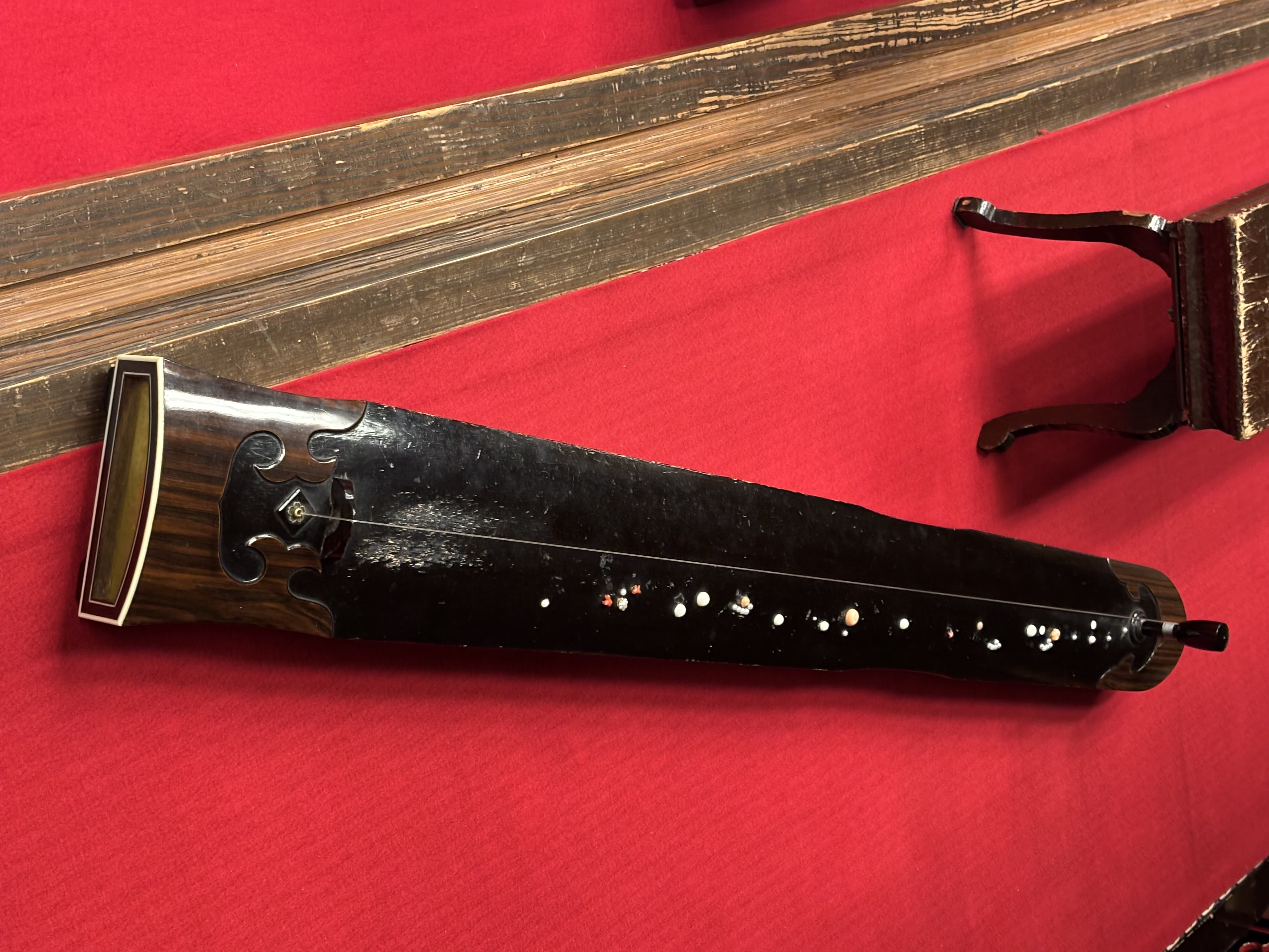一枚の板に一本の絃を張っただけのシンプルな琴は、一千百余年前の平安初期に、この須磨の地に流された中納言在原行平が、海辺で拾った板に緒を張って作った琴で我が身を慰めたのが始まりだといわれています。この一絃琴の伝統を守り育むため発足した保存会も、今年発足60周年を迎えられるとのこと。