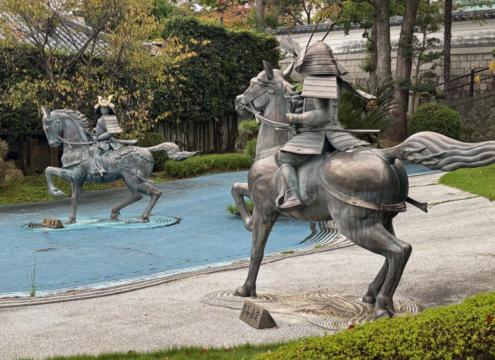 宝物殿を出るとすぐ、一ノ谷での平敦盛と熊谷直実の一騎打ちの場面を再現した源平の庭があります。この時、二人はどんな気持ちで向き合ったのでしょうか…。平和であることのありがたさを感じながら、須磨寺を後にします。