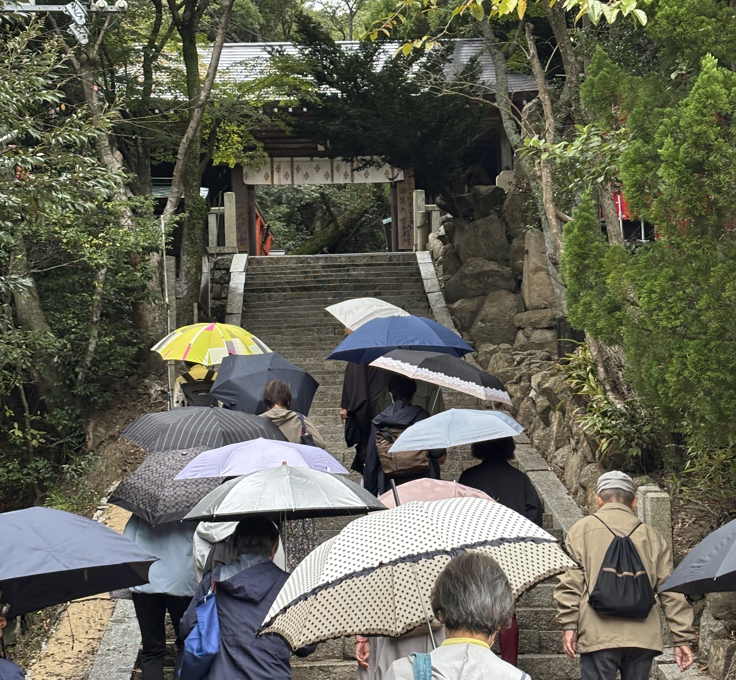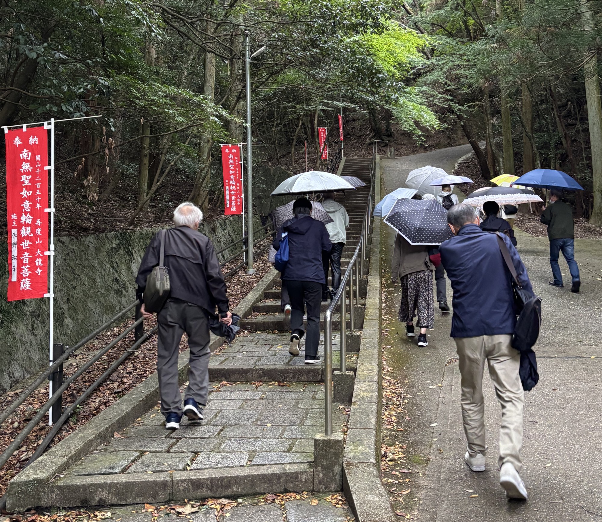 雨で滑らないよう気をつけながら、階段を登っていきます。