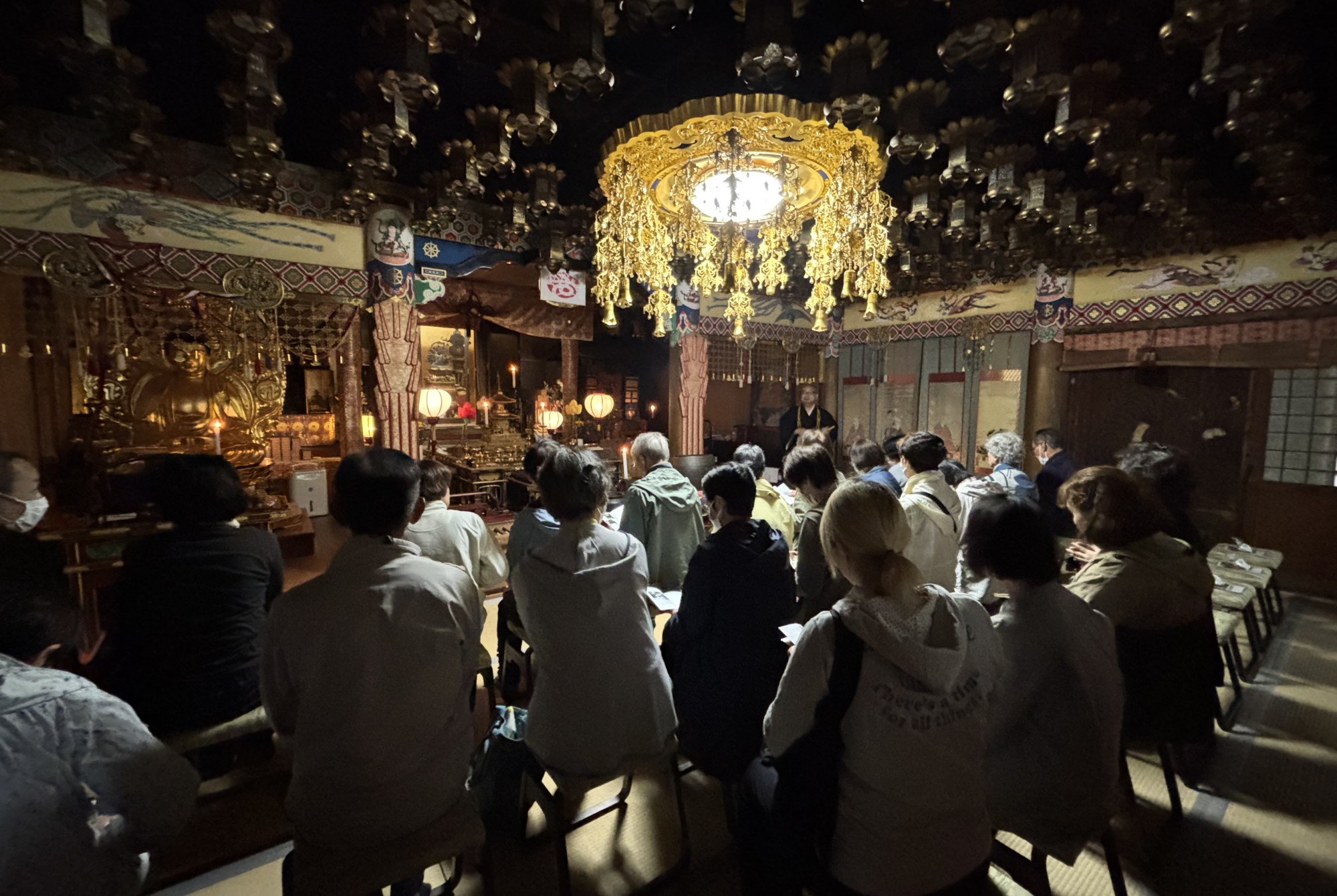 まずは、厳粛な本堂のなか、参加者全員で般若心経をお唱えします。