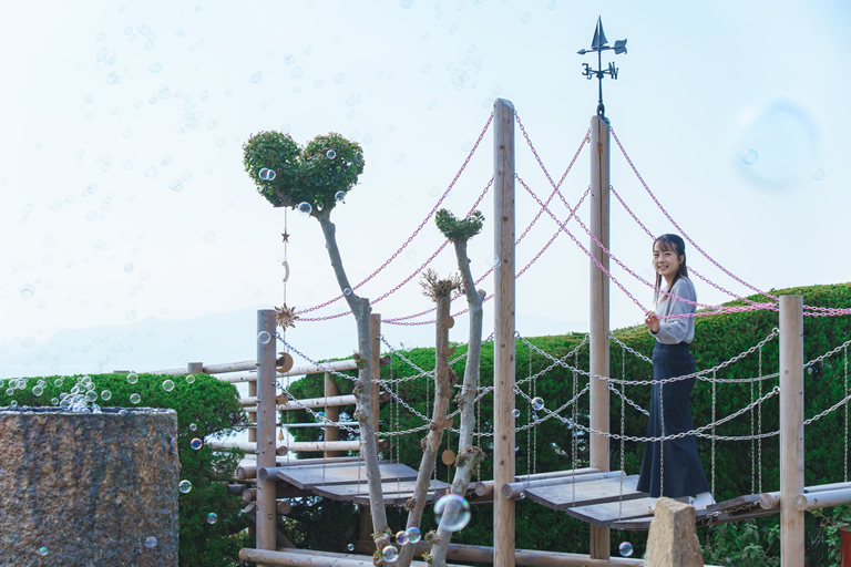 絶景の展望台に続くつり橋、海へ飛び出すような写真が撮れるブランコなどが設置されていて、素敵な写真がたくさん撮れます。