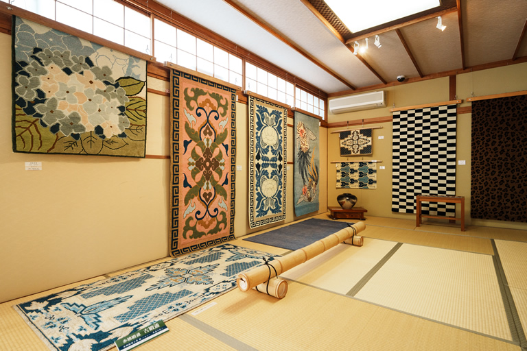 2階では「赤穂緞通」を展示販売。「赤穂緞通」は、すべてを手作業で行う貴重な手織り敷物で、日本三緞通(だんつう)の一つに数えられている伝統工芸品なんです。