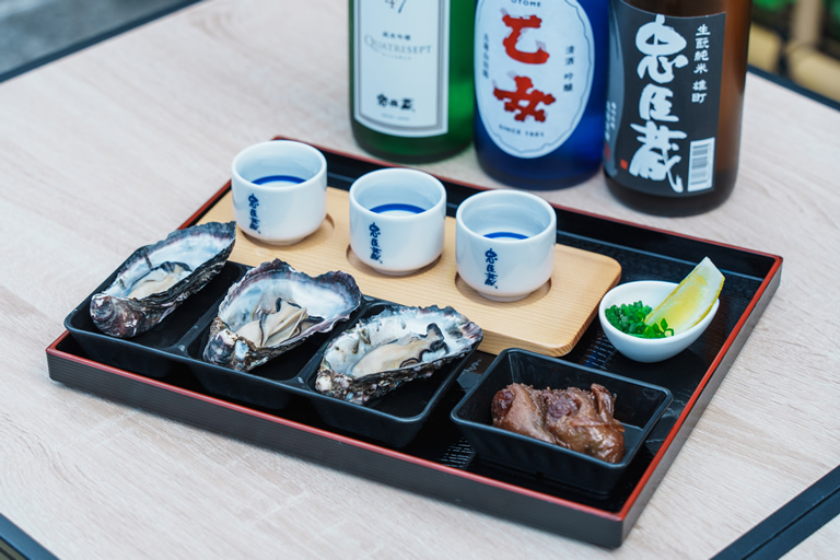 牡蠣シーズンといえば12月~4月ですが、「伝馬船」では「坂越かきと地酒のペアリング体験」を年間を通して実施。