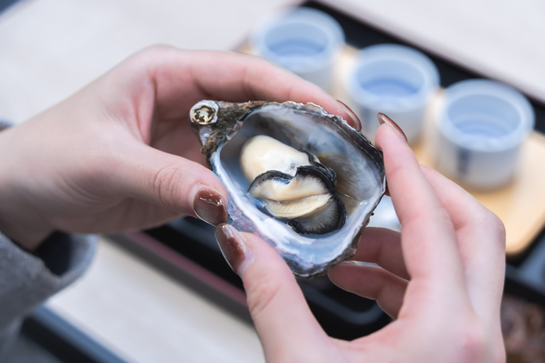 冬以外でも新鮮な牡蠣が食べられる理由は、産卵しないよう品種改良された「三倍体真牡蠣」の養殖も手掛けているため。この牡蠣は産卵で身が痩せることがないため春~夏でも美味しいのだそう。