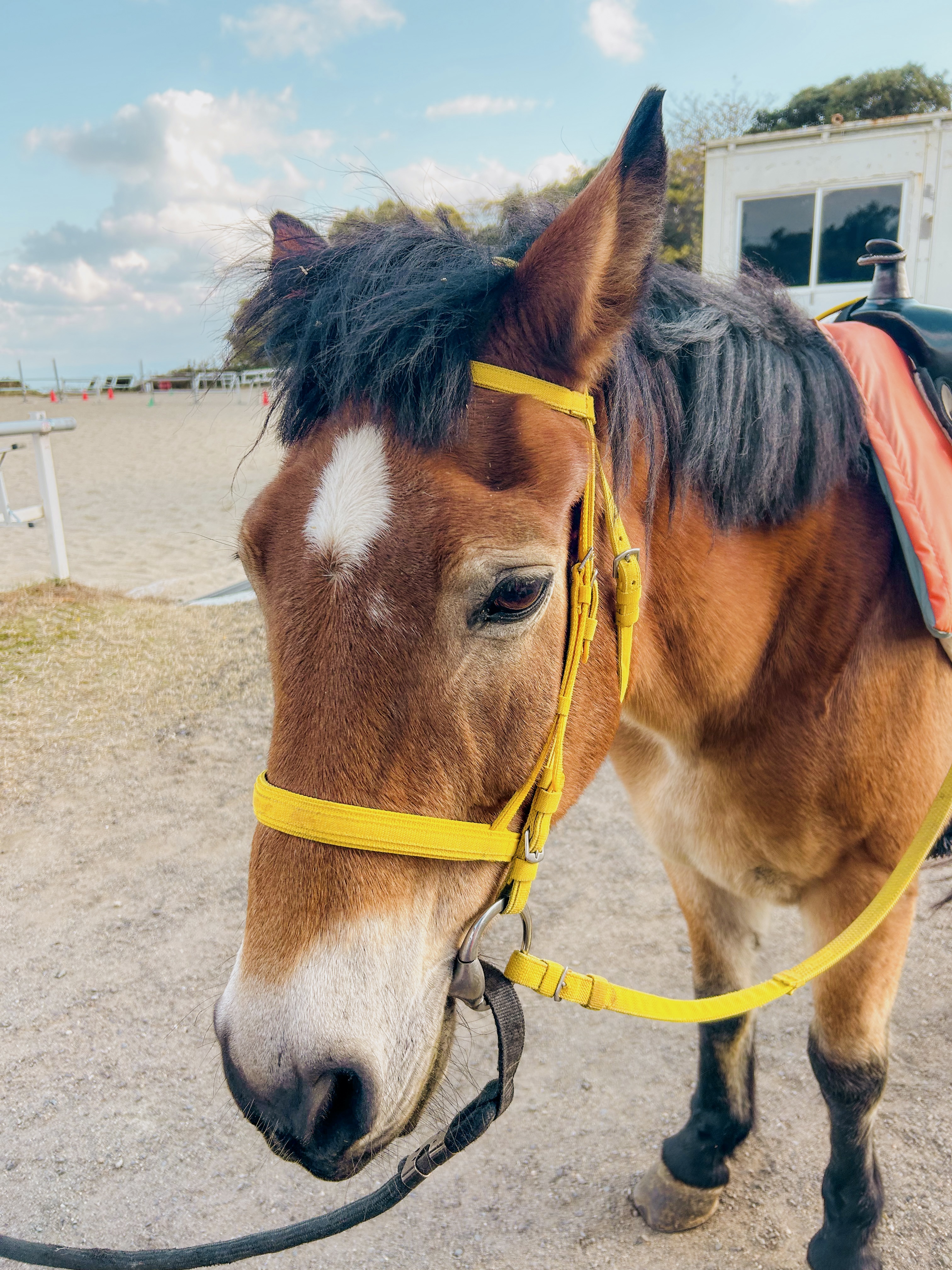 一緒に散歩したドラムは、人間でいうと90歳ぐらいのポニー。カメラのシャッター音がすると、ポーズを決めてくれるかのように立ち止まってくれたドラムにメロメロ……♡スタッフからは、馬がストレスをためないようにケアをしていることも聞けて、あたたかい気持ちになりました。