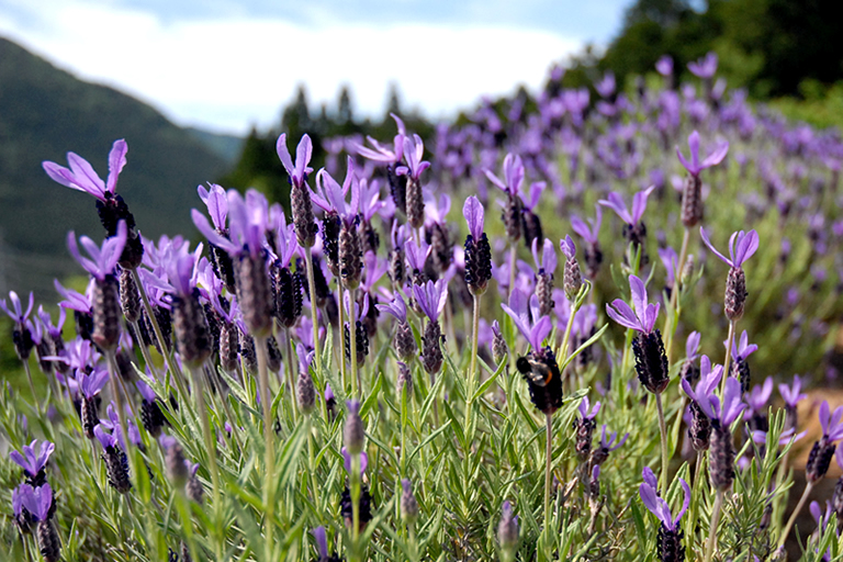 なだらかな丘陵地に広がる『ラベンダーパーク多可』は、5haの敷地に約2万株のラベンダーが栽培されている西日本最大規模のラベンダーパーク。完全無農薬にこだわり、地元の人たちが手作業で大切に育てておられるんですよ。