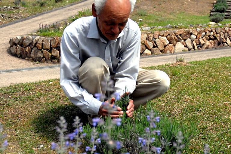 園の理事長さんがラベンダーの香りの楽しみ方も伝授してくださいました。写真のように、下から上へそっと撫で上げ、手のひらの移り香を楽しむのだそうです。「花を傷つけないように、やさしく、そっと」が約束ごとです。