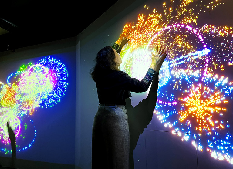 私のお気に入りは、触れた箇所に花火が上がるウォールアート。とってもおもしろい!