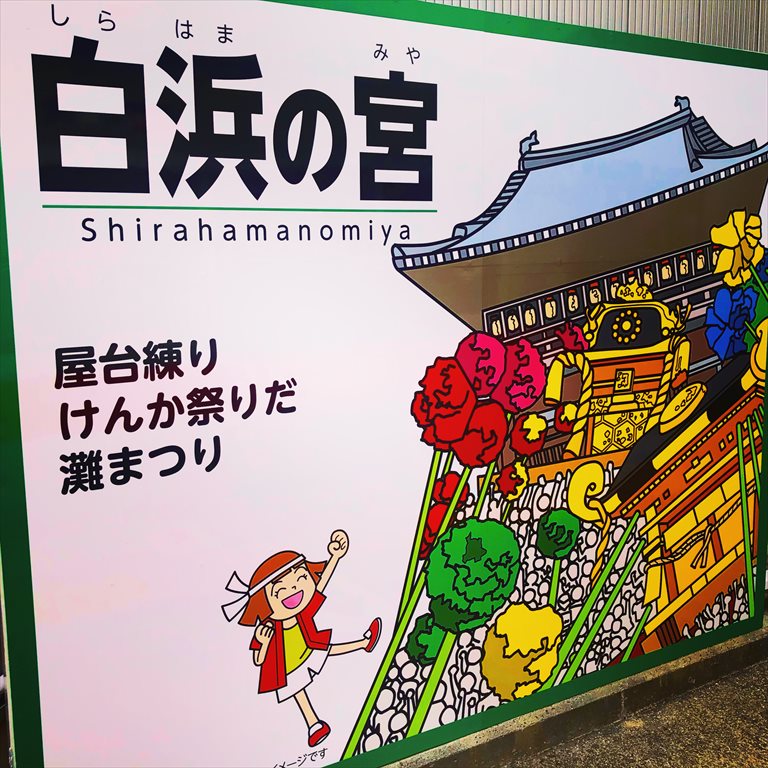 祭りが行われる松原八幡神社へは、そこまで徒歩3分の山陽電車「白浜の宮」駅が最寄り駅。