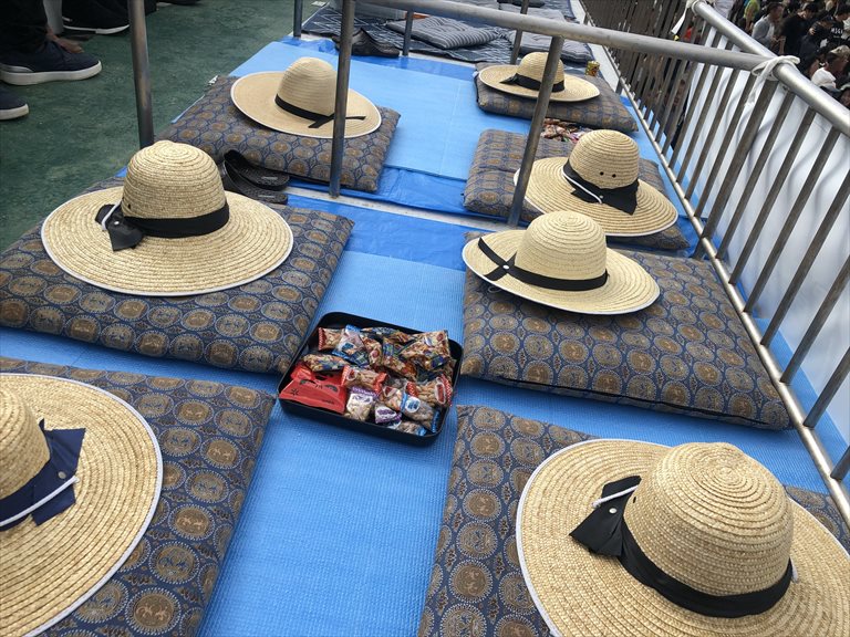 ここからまさに、かぶりつきで祭りを見物できる特等席です。お祭りのある、この日のためだけに建設されている施設だそう。なんと1マス数万円するとかしないとか。。。(+o+)
