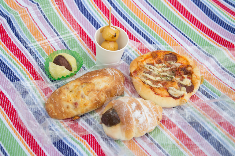 コスモスマルシェではレジャーシートの無料貸出しも行なっていたのでさっそくレンタルして昼食をいただくことに。