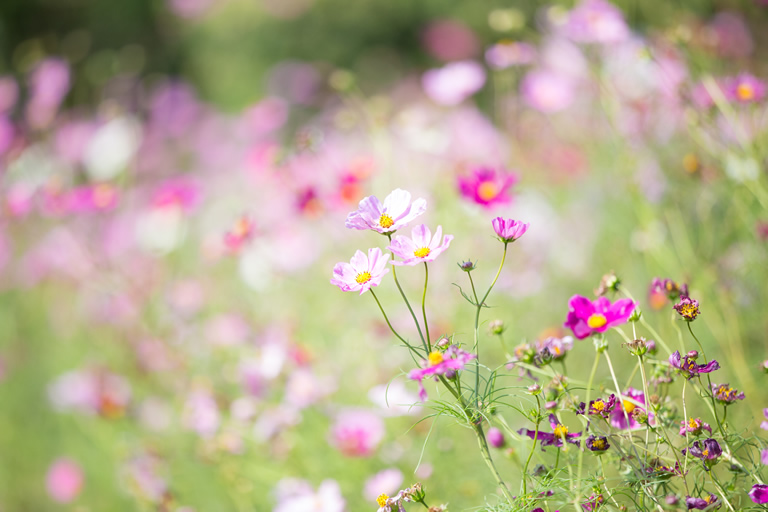 ピンク、ホワイト、パープル ... 。カラフルなコスモスに埋もれてきました♪