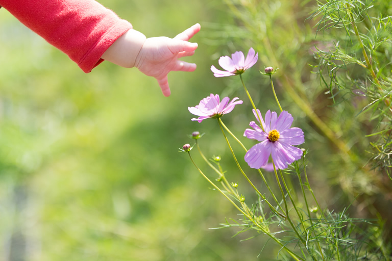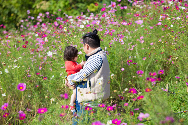 一緒に連れて行った娘もとっても綺麗なコスモスに興味津々。