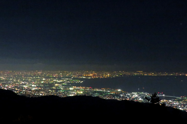 六甲ガーデンテラスではあちこちから、“1000万ドルの夜景”と呼ばれる海と山に包まれた神戸の夜景が望めます。