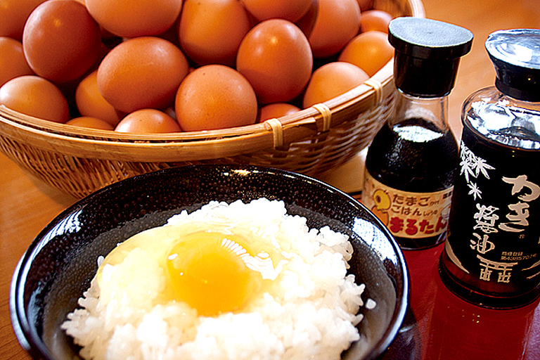 近辺のグルメでオススメなのは、町で大人気の卵かけご飯の店「但熊」です。