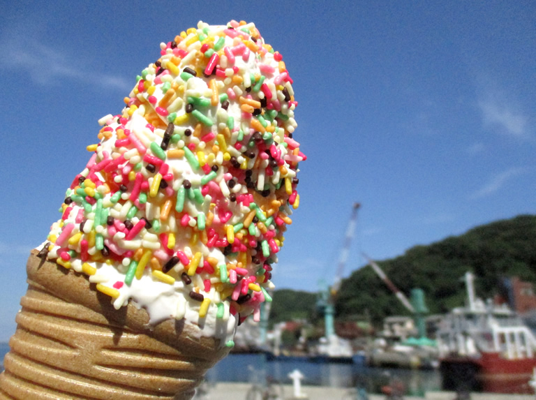 ソフトクリーム(280円)にカラースプレー(20円)をトッピング。疲れた後に食べるソフトクリーム…たまりません!