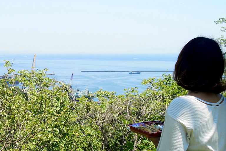 海を眺めながら食べるお弁当、最高です♪