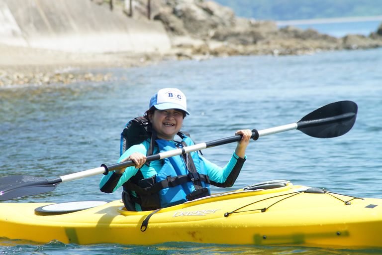 私は今回、初心者の方にもオススメの一人乗りのカヌーに挑戦しました。インストラクターの方のとってもわかりやすい指導があるので安心。