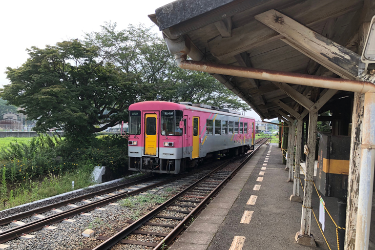 神戸からJR神戸線で加古川駅へ、そこからJR加古川線に乗り換えて粟生駅に到着。そこでさらに北条鉄道に乗り換えて、法華口(ほっけぐち)駅に到着しました。神戸からの所要時間は1時間余り。カラフルなディーゼルカーに揺られ、車窓からの風景を楽しみながら意外に早く到着しました。