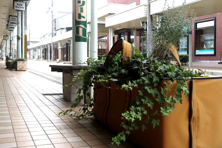 通りに並ぶプランターもカバン生地でデコレーションされていて、とても可愛いです。