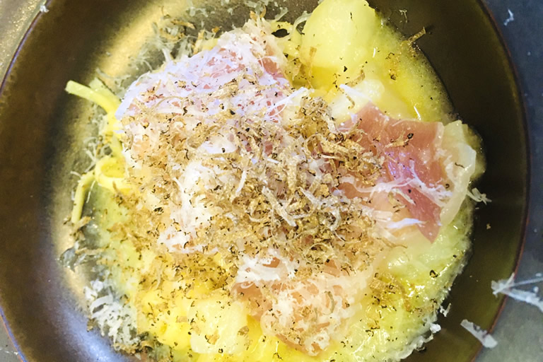 当日のお楽しみだったパスタ。生ハムとトリュフで、ガツンと濃厚なテイストの締めの一皿。