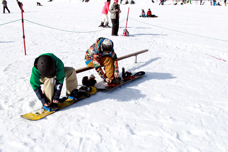 ボードの装着に慣れていない人のために、簡易ベンチまで用意されています。