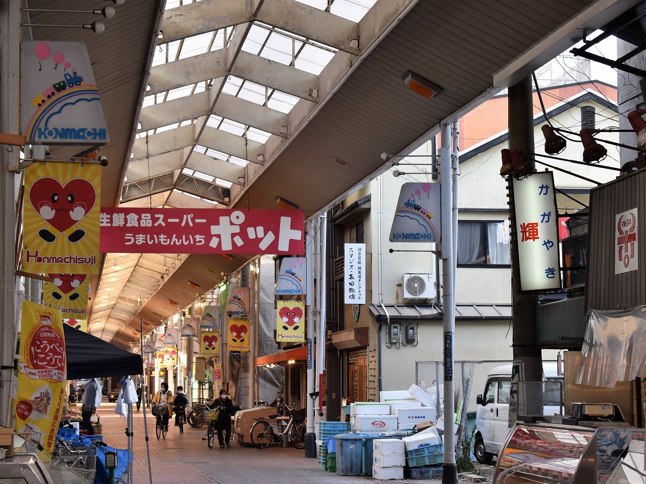 このウォークのコースでは、六間道商店街・本町筋商店街・丸五市場・西神戸センター街・大正筋商店街と、5つの商店街を通過します。