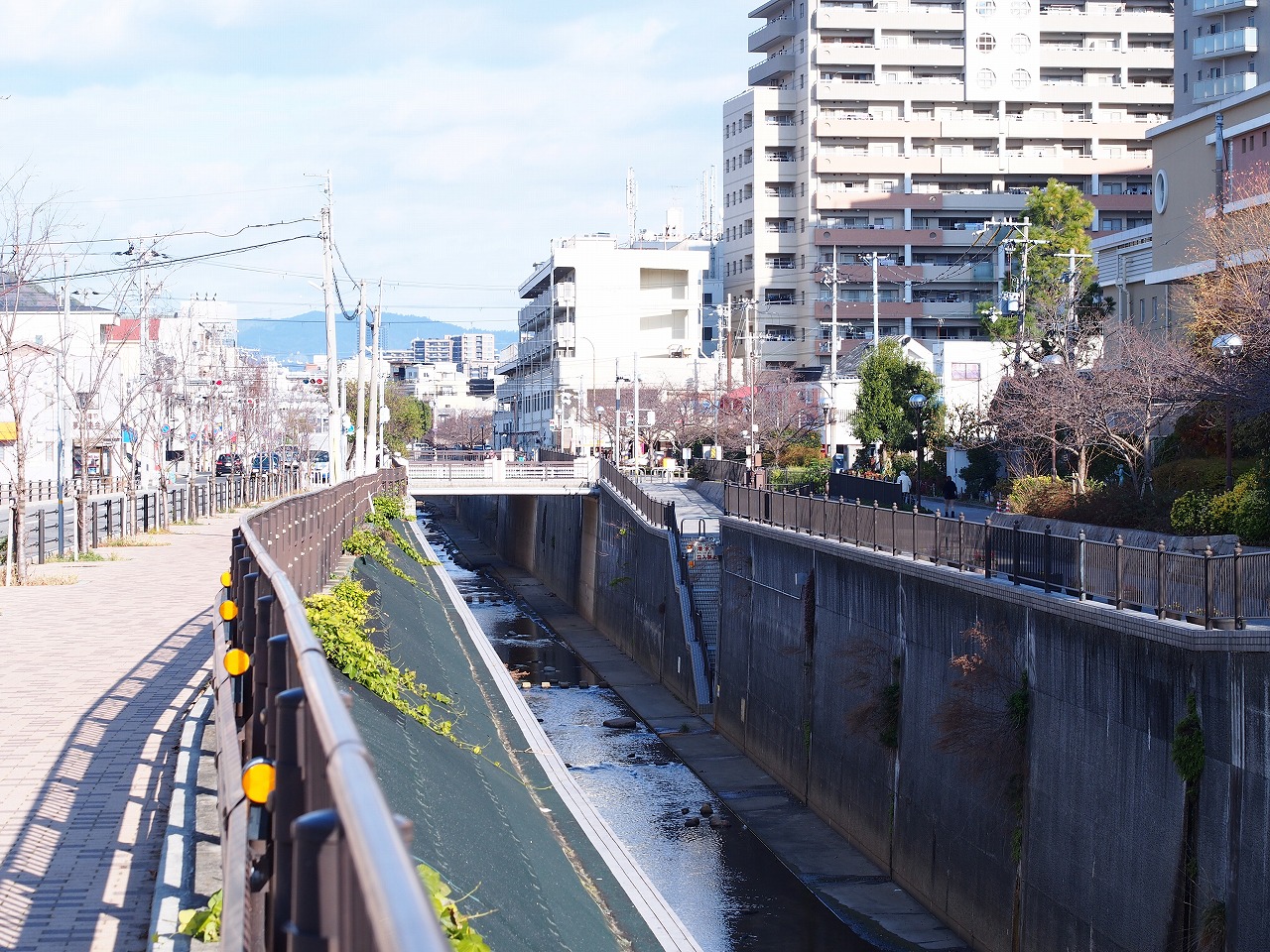 川崎重工業兵庫工場の横を通り抜け、45分ほど歩くと、新長田エリアに到着。