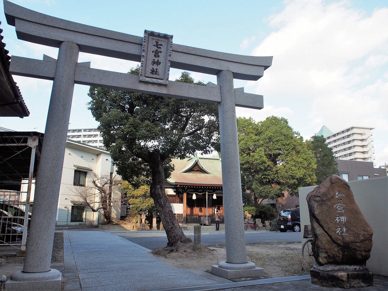 エリアに入ってまず見えてくるのは、七宮神社です。江戸時代、廻船商人である高田屋嘉兵衛はここへ模型船を献納し、海上交通安全を祈願しました。