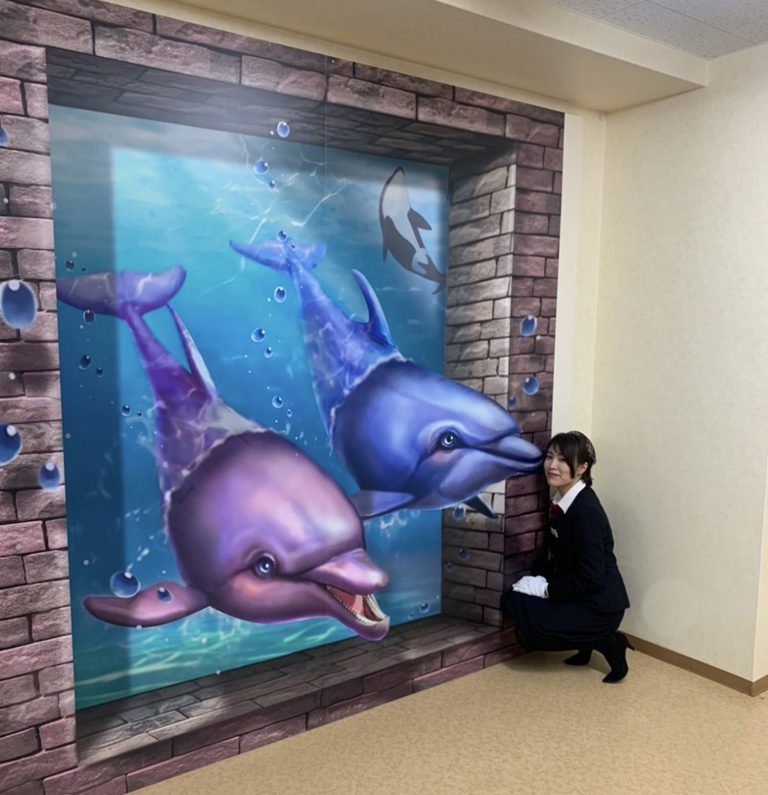 お城の中に入ると壁や床にイルカやぞう、恐竜やスケートボードなどのトリックアートが描かれています。また可愛いぬいぐるみなどの置き物がたくさんあるので、SNS映えな写真がたくさん撮れます。