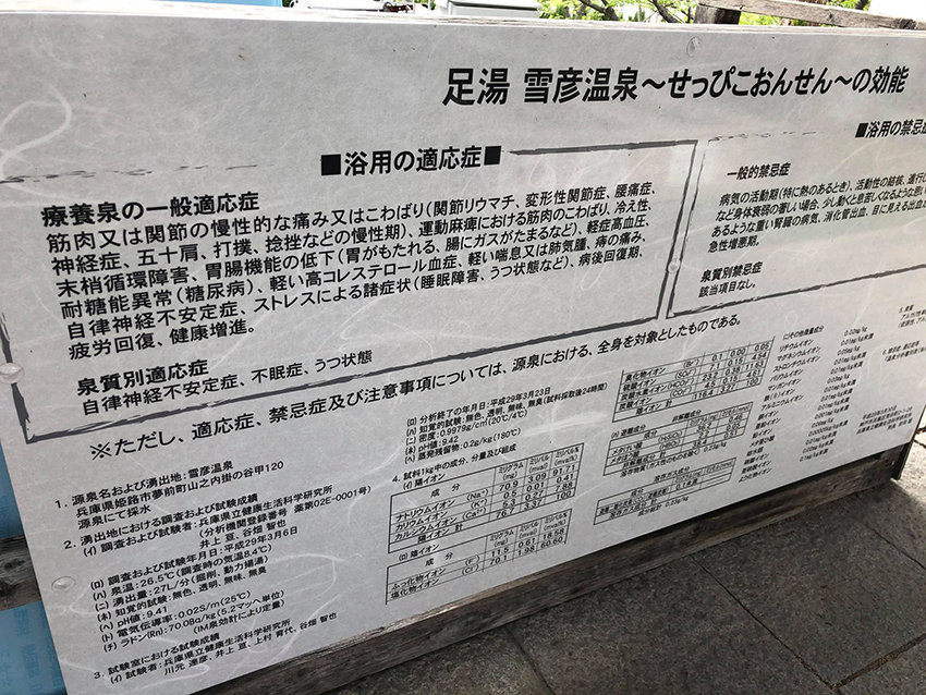 こちらの足湯は、雪彦温泉の足湯となっており、様々な効能があります。