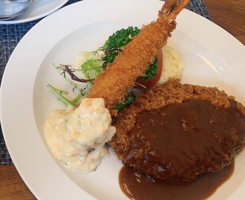 人気なのがハンバーグ、エビフライ、カニクリームコロッケとボリュームある「Wランチ」。出来立てアツアツのお料理に思わず何枚も写真を撮ってしまいました。