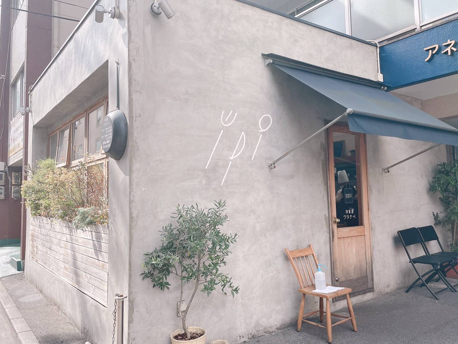 こちらのお店の外観には、フォーク・ナイフ・スプーンが描かれていて、シンプルでおしゃれな雰囲気です。待ち時間の間に写真を撮っている人もたくさんいらっしゃいます。