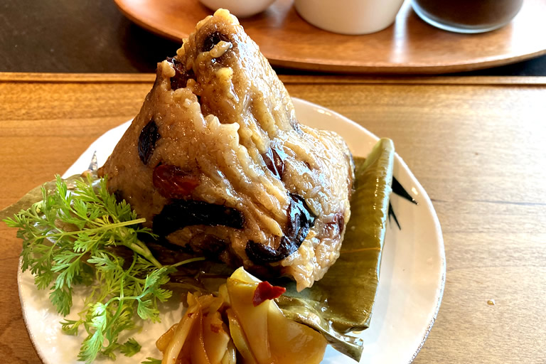 そして、丹波篠山のお土産におすすめなのが、福住から車で10分ほどの場所にある「丹波黒豆肉粽 おくも」の粽(ちまき)です。