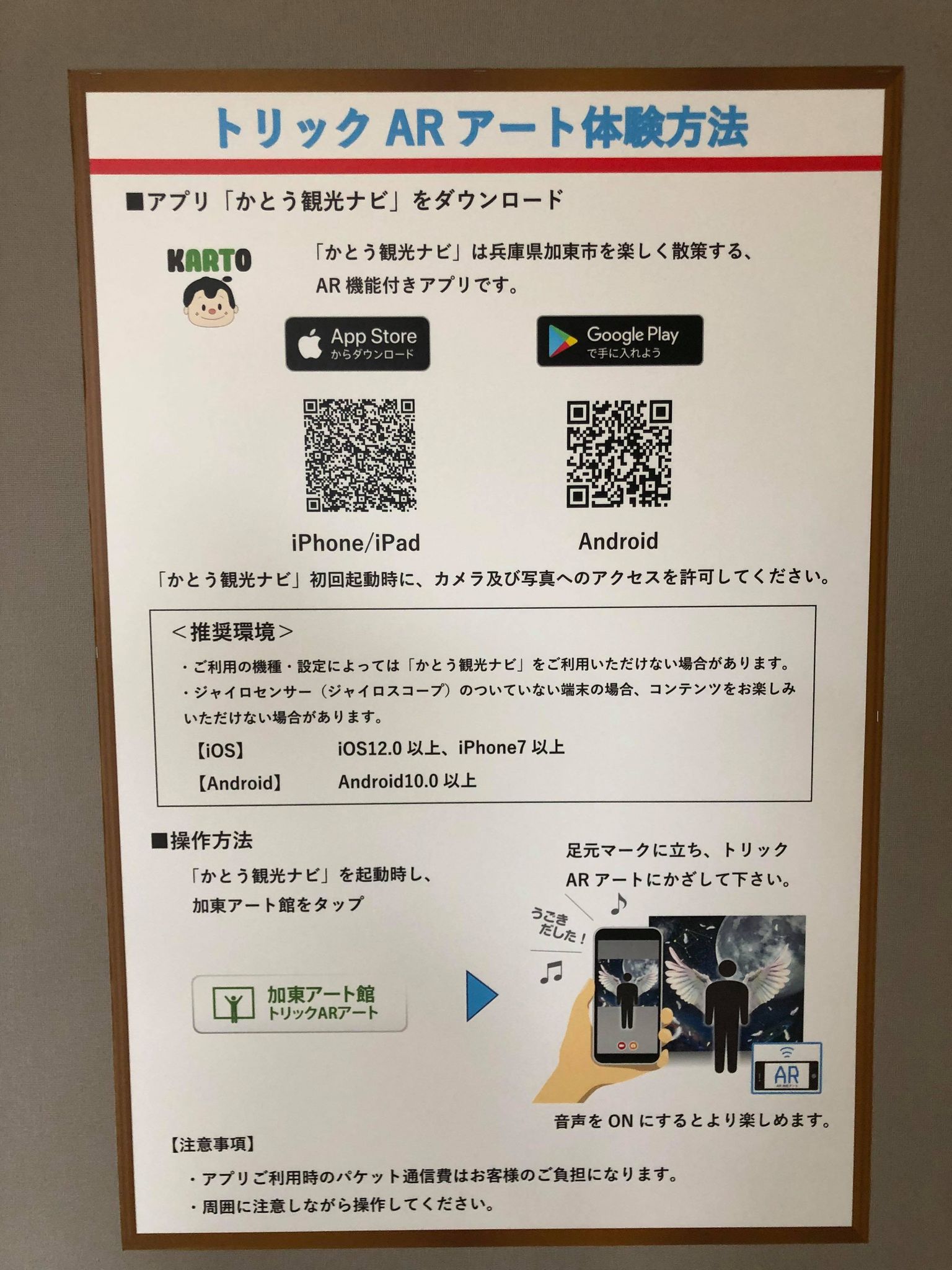 アート館では、無料アプリ「かとう観光NAVI」の登録をお忘れなく。