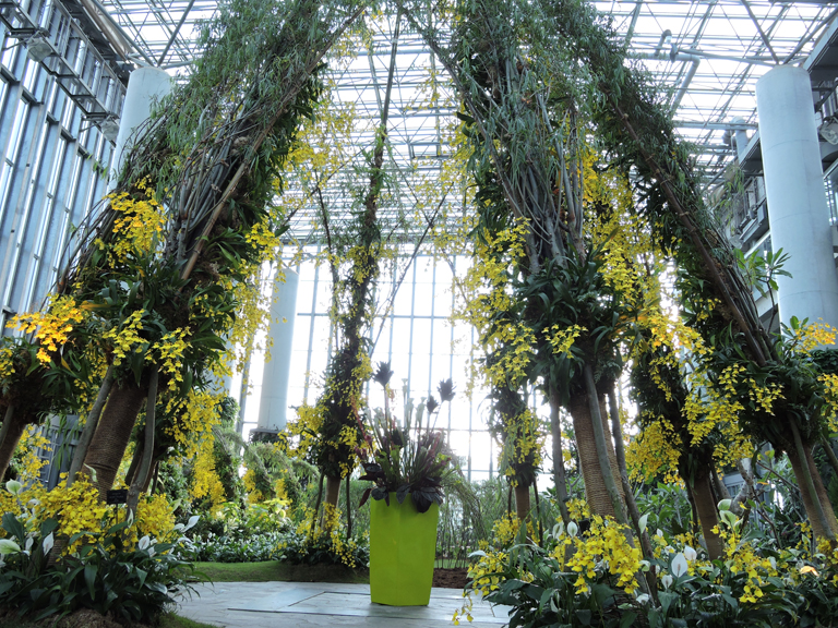 展示室正面にそびえ立つガーデンキャッスルは、まさに「生きたツリー」。